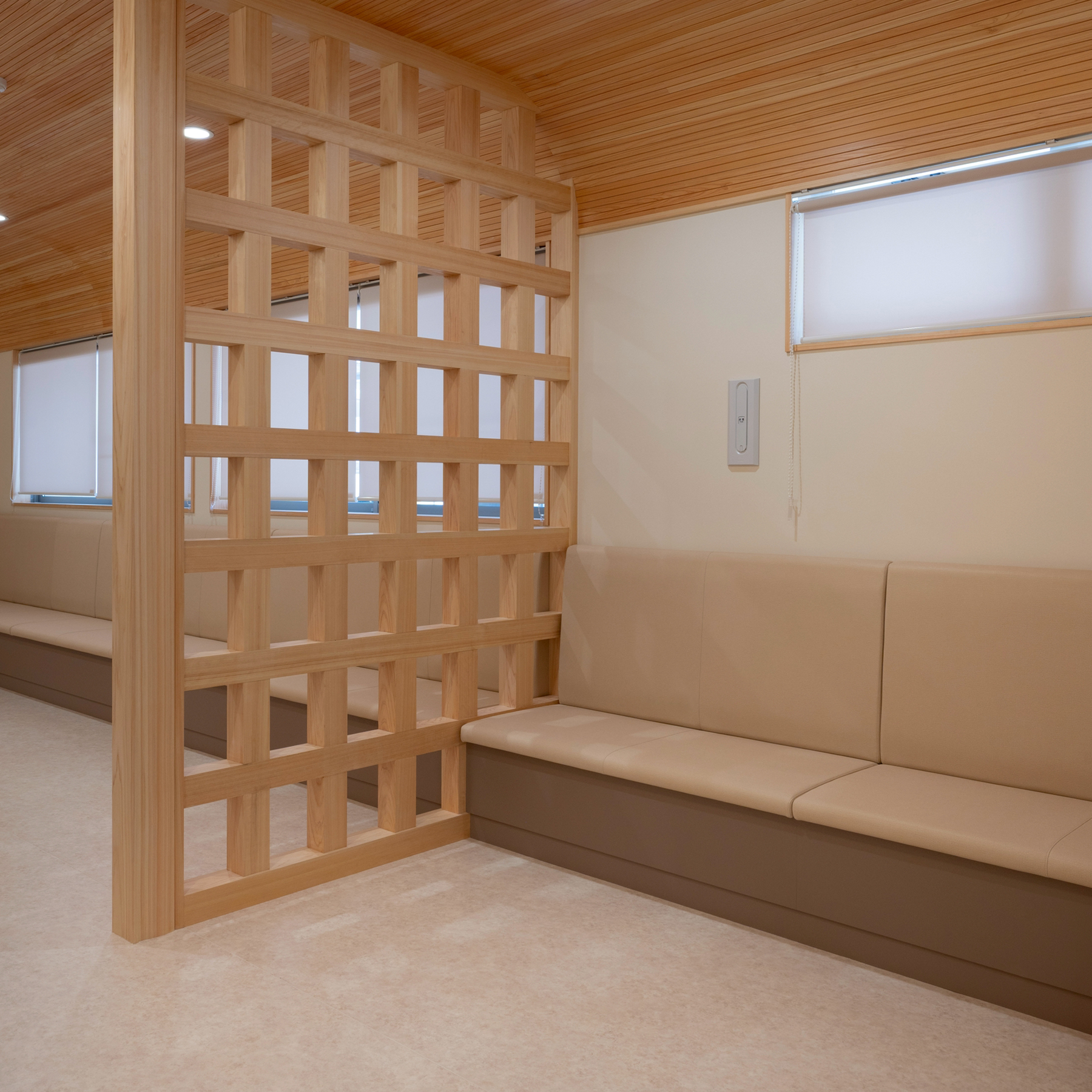 院内は、木のぬくもりを感じるあたたかいデザインになっています。 室内は明るくて開放感があり、来院される方が少しでもリラックスできるような、やさしい空間になっています。