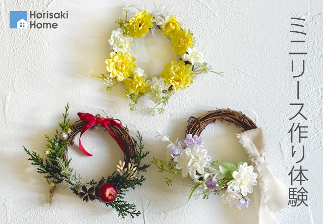 今回は「家づくり相談会」や「耐震セミナー」に加えて、『ミニリース作り体験』のワークショップも同時開催いたします。