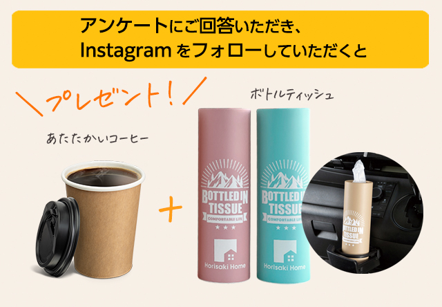 ご来場特典として、アンケートにご回答のうえ、堀崎ホームのInstagramアカウントをフォローしていただいた方に、