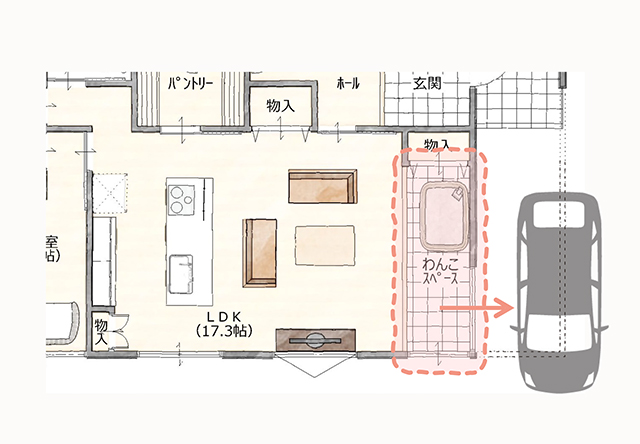 マイホームを建てるなら、家族の一員であるワンちゃんにも、落ち着いて過ごせる場所をつくってあげたいですよね。