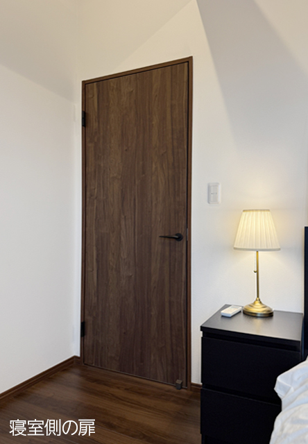 そのため、“廊下側には明るくさわやかなホワイト系を” “寝室側には落ち着いた木目を”