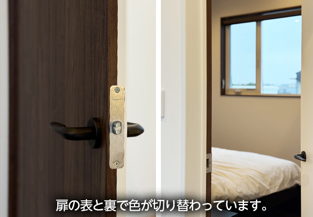 しかし、今回のモデルハウスでは 1枚の扉で両面の色を変える という仕様を採用しました。
