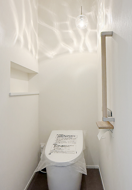 トイレの壁にニッチを設けることで、小物や雑貨をさりげなく飾れる空間になります。