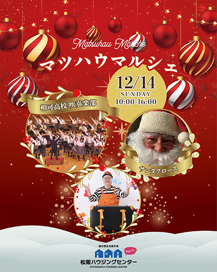 12月14日(日)、堀崎ホームがモデルハウスを出展している松阪ハウジングセンターにてマツハウマルシェが開催されます。