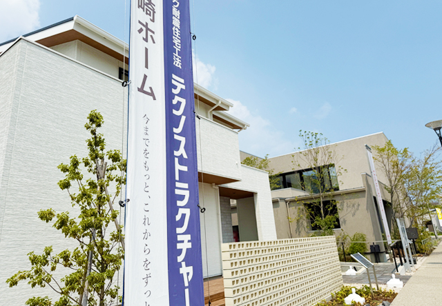 松阪ハウジングセンター内、国道23号線側の白い建物が、堀崎ホームのモデルハウスです。
