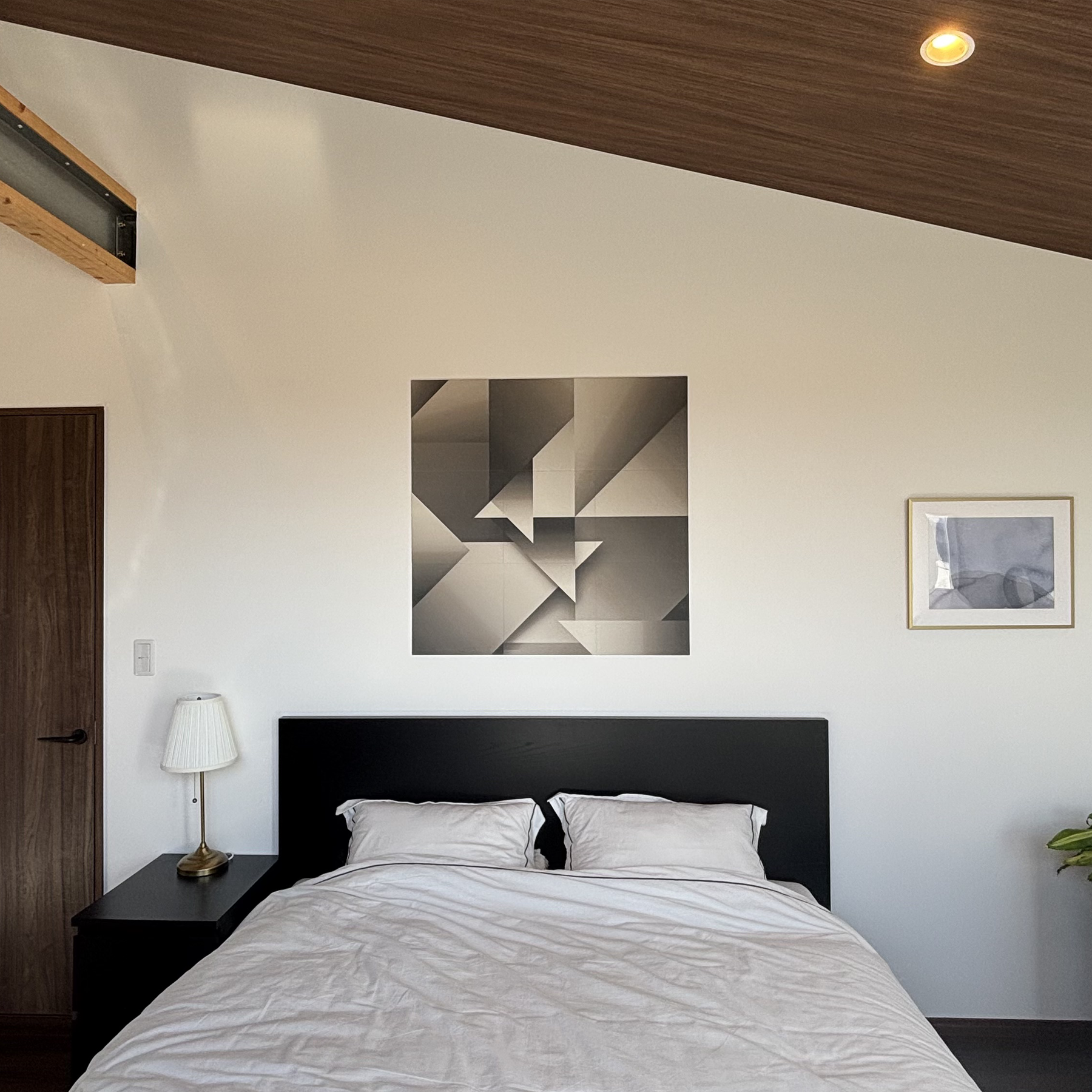 写真をご覧いただくと分かるように、寝室全体が落ち着いた雰囲気になり、ホテルライクな空間に仕上がりました。