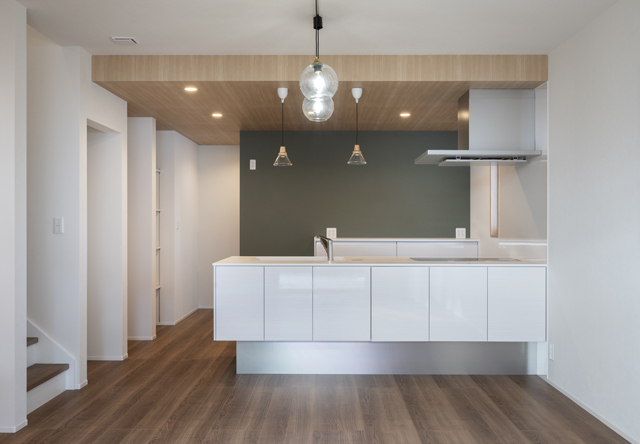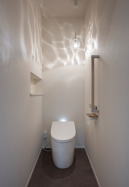 下がり天井のキッチンや、照明にこだわったトイレ、