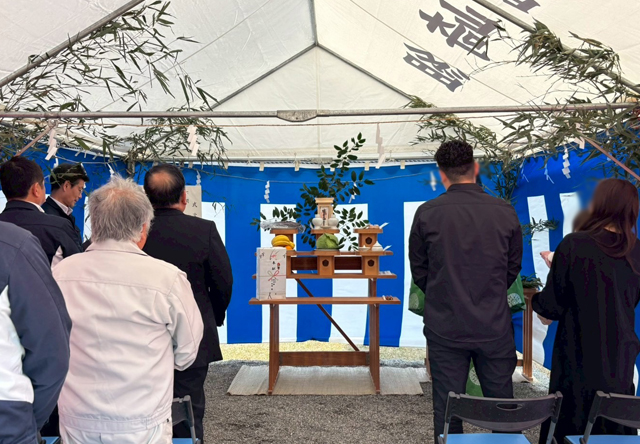 式の中では、土地を清める儀式や、これから始まる工事の無事を願う場面もあり、いよいよ家づくりが本格的にスタートする実感が高まるひとときとなりました。