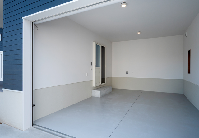 インナーガレージの奥にある扉は室内に直結しており、雨の日でも濡れることなく、スムーズな動線が確保されています。