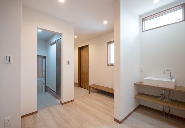 その奥にはセカンド洗面があり、手洗いを済ませてからリビングへ入る動線になっています。